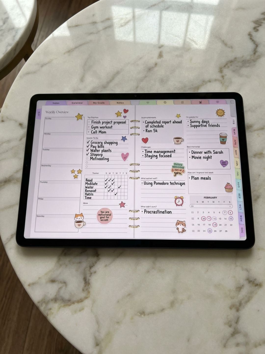 Enjoy an efficient, eco-friendly solution that cuts out paper waste. Say goodbye to flimsy planners and hello to staying organized, productive, and on top of your goals.
